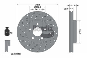 Výška ( v mm ) : 51,2 mm Hmotnost [kg] : 8,3 kg typ brzdového kotouče : děrovaný typ brzdového kotouče : vnitřně větráno síla brzdového kotouče v mm : 28 mm minimální tloušťka (v mm) : 26 mm Počet děr v brzdovém bubnu : 05/06 Zpracování : vysoce nauhličeno Vnější průměr [mm] : 295 mm Centrovací průměr [mm] : 67 mm Kruhový vyvrt ? 2 [mm] : 112 mm povrch : nátěr Doplňující výrobek/info 2 : bez náboje kola Doplňující výrobek/info 2 : bez šroubů vozidlového kola Délka balení [cm] : 30,3 cm Šířka balení [cm] : 30,3 cm Výška balení [cm] : 8,6 cm