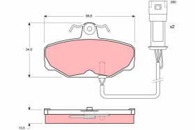 Omezení výrobce : TRW tloušťka/síla( v mm) : 13,5 mm Zkušební značka : E1 90R 01025/179 Šířka v mm : 89,8 mm Výška ( v mm ) : 54,0 mm Počet ukazatelů opotřebení [na nápravu] : 2 na nápravu uzavírací výstražný kontakt : včetně uzavíracího výstražného kontaktu Doplňkový výrobek/ doplňkové info : s příslušenstvím Varovný odstup [mm] : 260 mm Doplňující výrobek/info 2 : Šrouby třmenů více informací