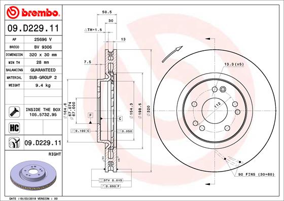 BREMBO brzdový kotouč 09.D229.11 Ean: 8020584232347