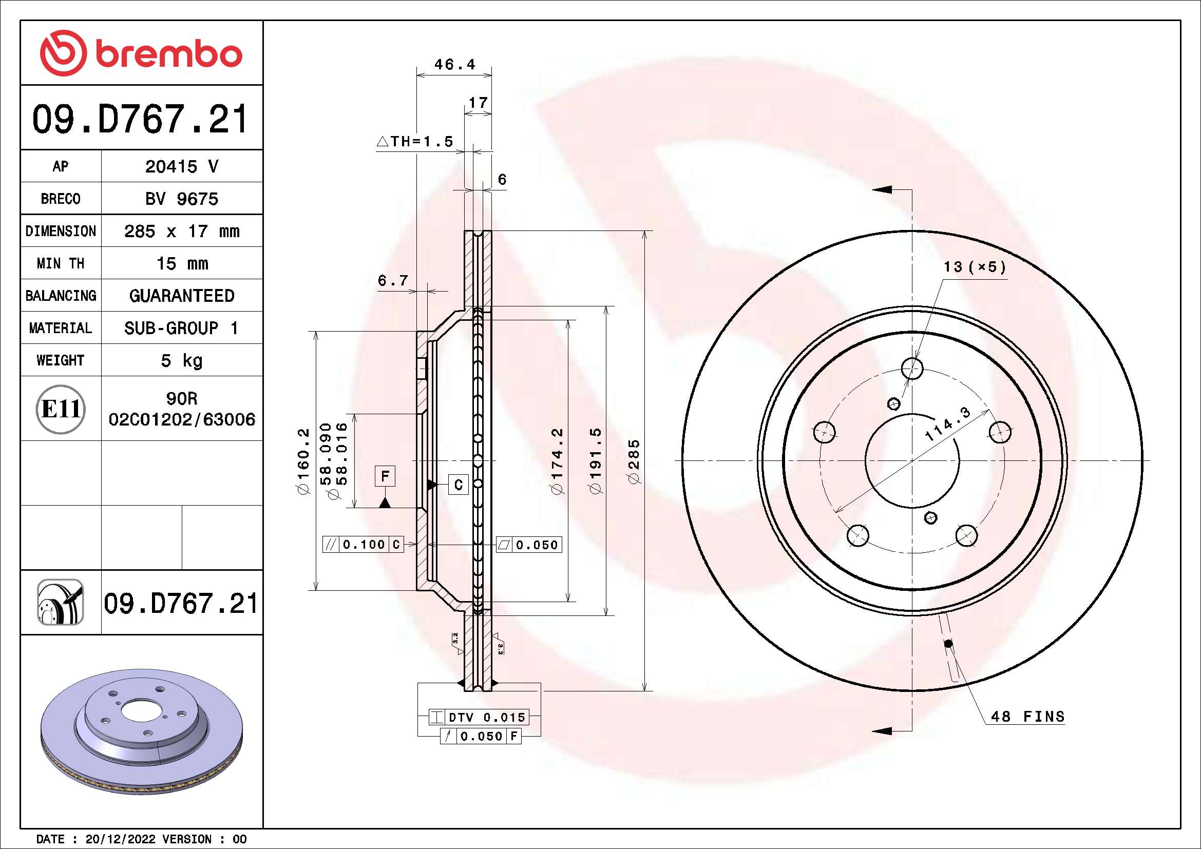BREMBO brzdový kotouč 09.D767.21 Ean: 8020584323694