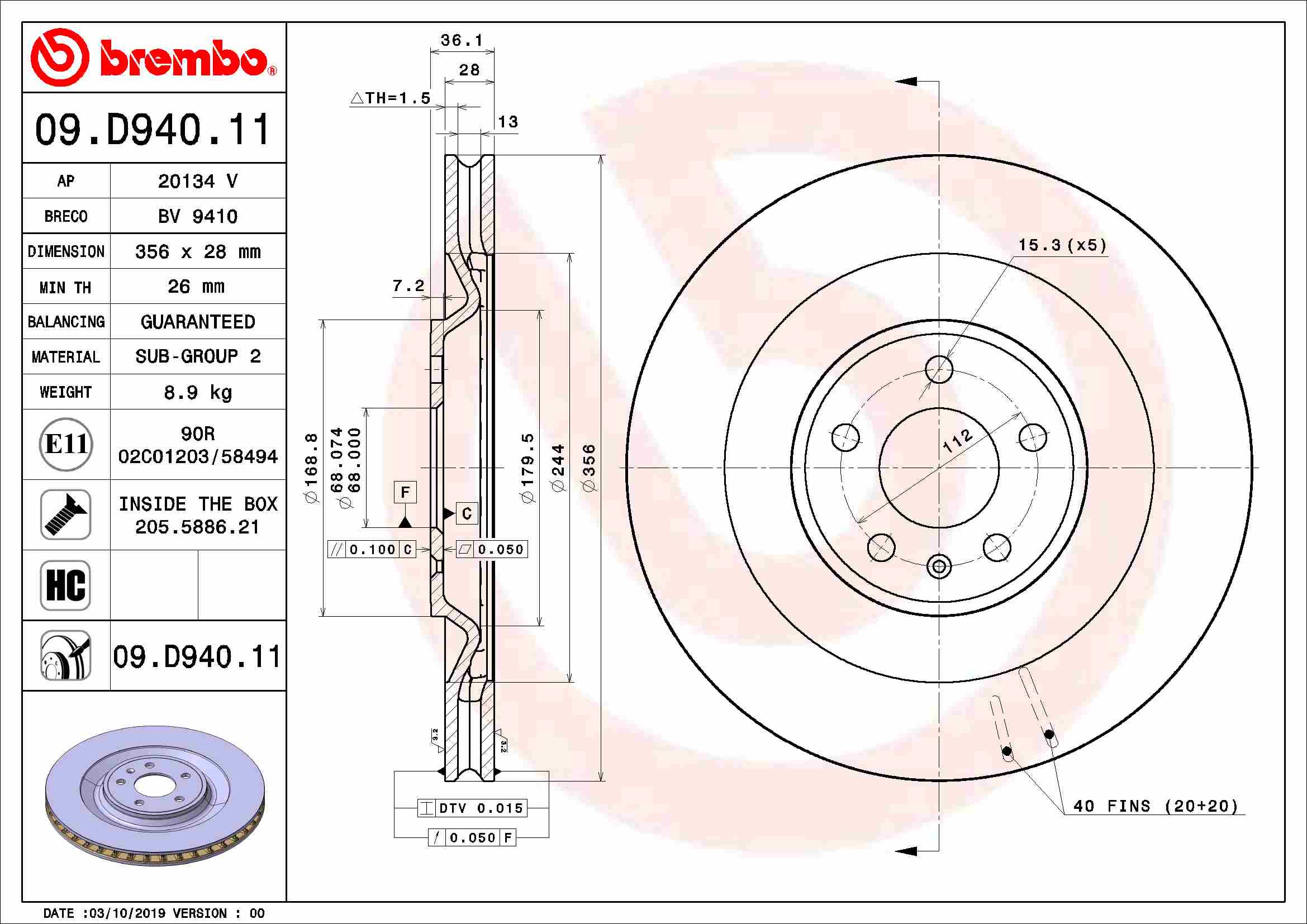 BREMBO brzdový kotouč 09.D940.11 Ean: 8020584317327
