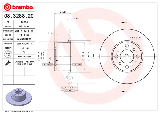 BREMBO brzdový kotouč 08.3288.20 Ean: 8020584328828