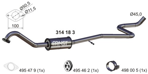 ERNST střední tlumič výfuku 314183 Ean: 4007463314183