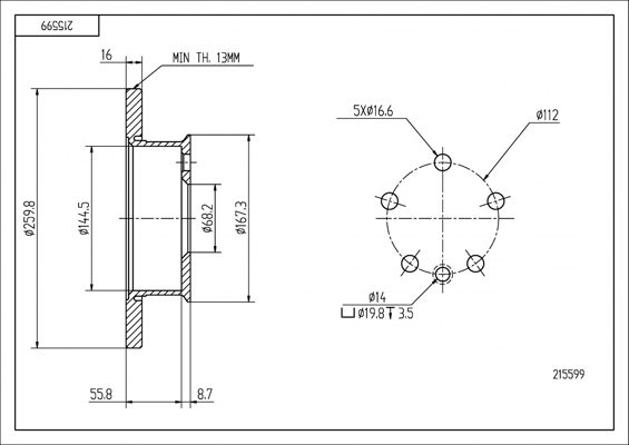 HART brzdový kotouč 215 599 Ean: 5907504011981