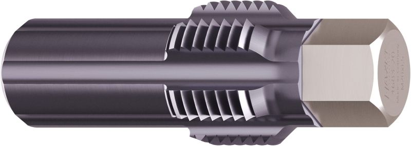 Použití: Odborné dořezávání, čištění příp. oprava uchycova senzorů teploty výfuk. plynů / sond •Úspora času: Výměna výfukového systému ve většin již není nutná •Velikost závitu: M20 x 1,5 •Pro senzory NOX u: DAF ∙ užitk.voz. MERCEDES-BENZ ∙ MAN ∙ SCANIA ∙ užitk.voz. RENAULT ∙ užitk.voz. Volvo •Také vhodné u modelů os. voz. kde je namontován senzo příp. senzor částicového filtru se závitem M20 x 1 BMW ∙ AUDI ∙ VW ∙ OPEL ∙ MERCEDES-BENZ •S vodicím čepem a čisticími drážkami •Vodicí čep zabrání vzpříčení závitníku k dořez umožní tím přesné dořezávání příp. čištění za poškozeného závitu •Nedochází k překlopení nebo vzpříčení při dořez •Krátké provedení k použití ve zúžených konstrukč prostorech •6 řezných ploch pro optimální přesnost lícování a jednoduchou a rychlou manipulaci •Vysoce kvalitní povrchová úprava TiAIN pro delší ži •Vhodné k použití u komponent z nerezové oceli •Made In Germany •Pohon: Vnější šestihran 13 mm •Rozměry / délka: 50 mm Proč povrchová úprava TiAlN (nitrid titanu - hliníku)? •Vhodné k obrábění za sucha •Keramický povrch minimalizuje tření •Optimální životnost •Odolnost vůči teplotám do 800° C •Není nutný žádný chladicí prostředek