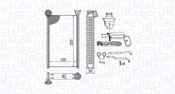 MAGNETI MARELLI výměník tepla, vnitřní vytápění 350218505000 Ean: 805094709004