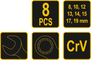 - Název: Sada klíčů očkoplochých 8 ks 8 - 19 mm CrV TO-51705