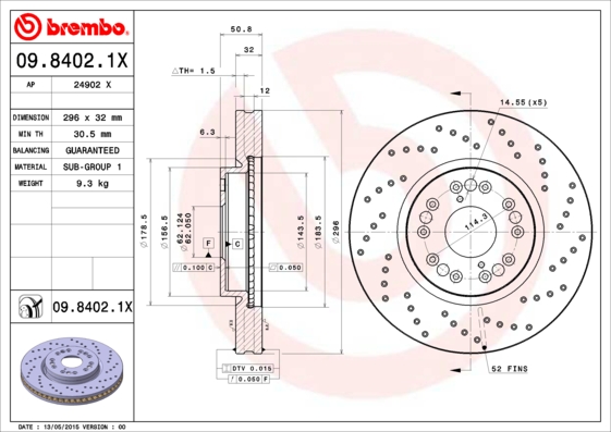 BREMBO brzdový kotouč 09.8402.1X Ean: 8020584217702