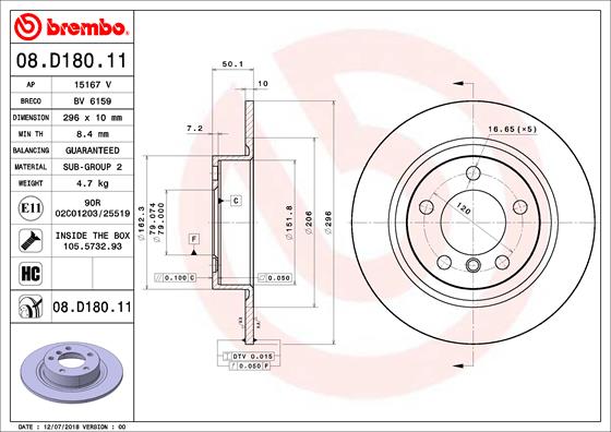 BREMBO brzdový kotouč 08.D180.11 Ean: 8020584236178