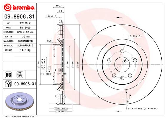 BREMBO brzdový kotouč 09.8906.31 Ean: 8020584237953