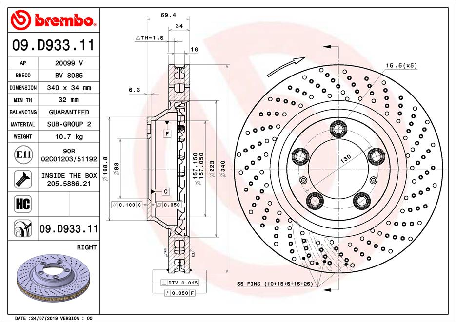 BREMBO brzdový kotouč 09.D933.11 Ean: 8020584312766