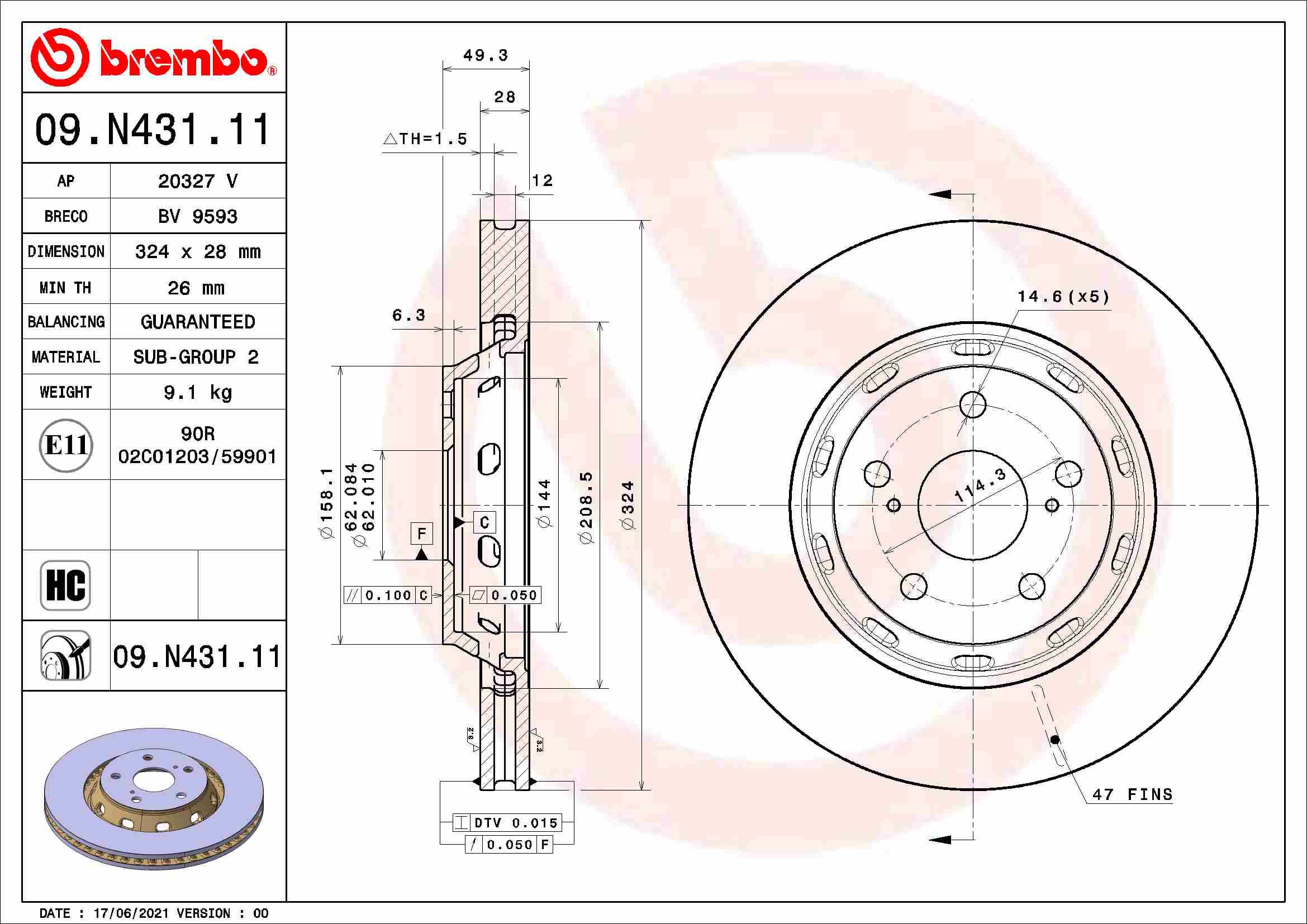 BREMBO brzdový kotouč 09.N431.11 Ean: 8020584318881