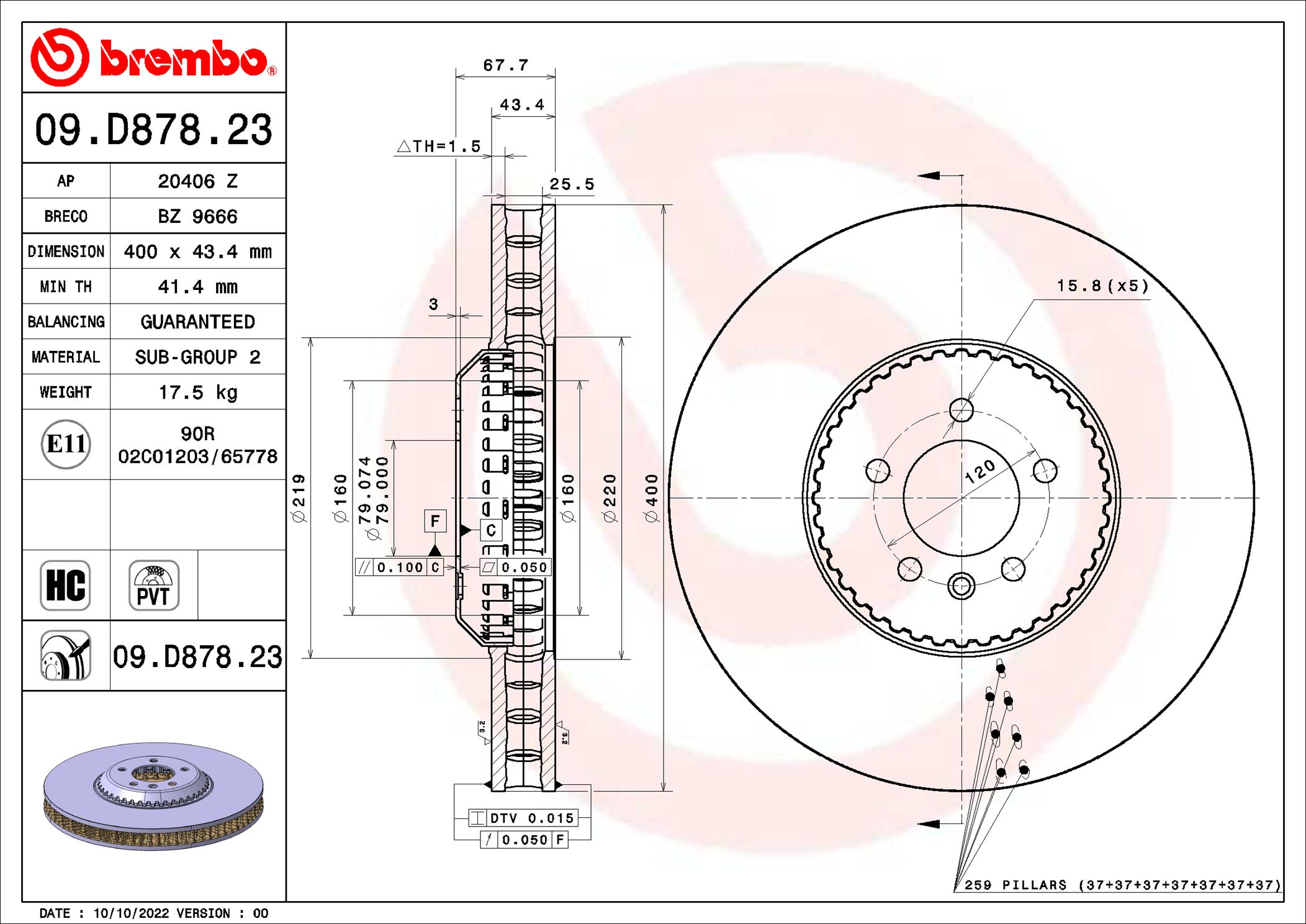 BREMBO brzdový kotouč 09.D878.23 Ean: 8020584321614