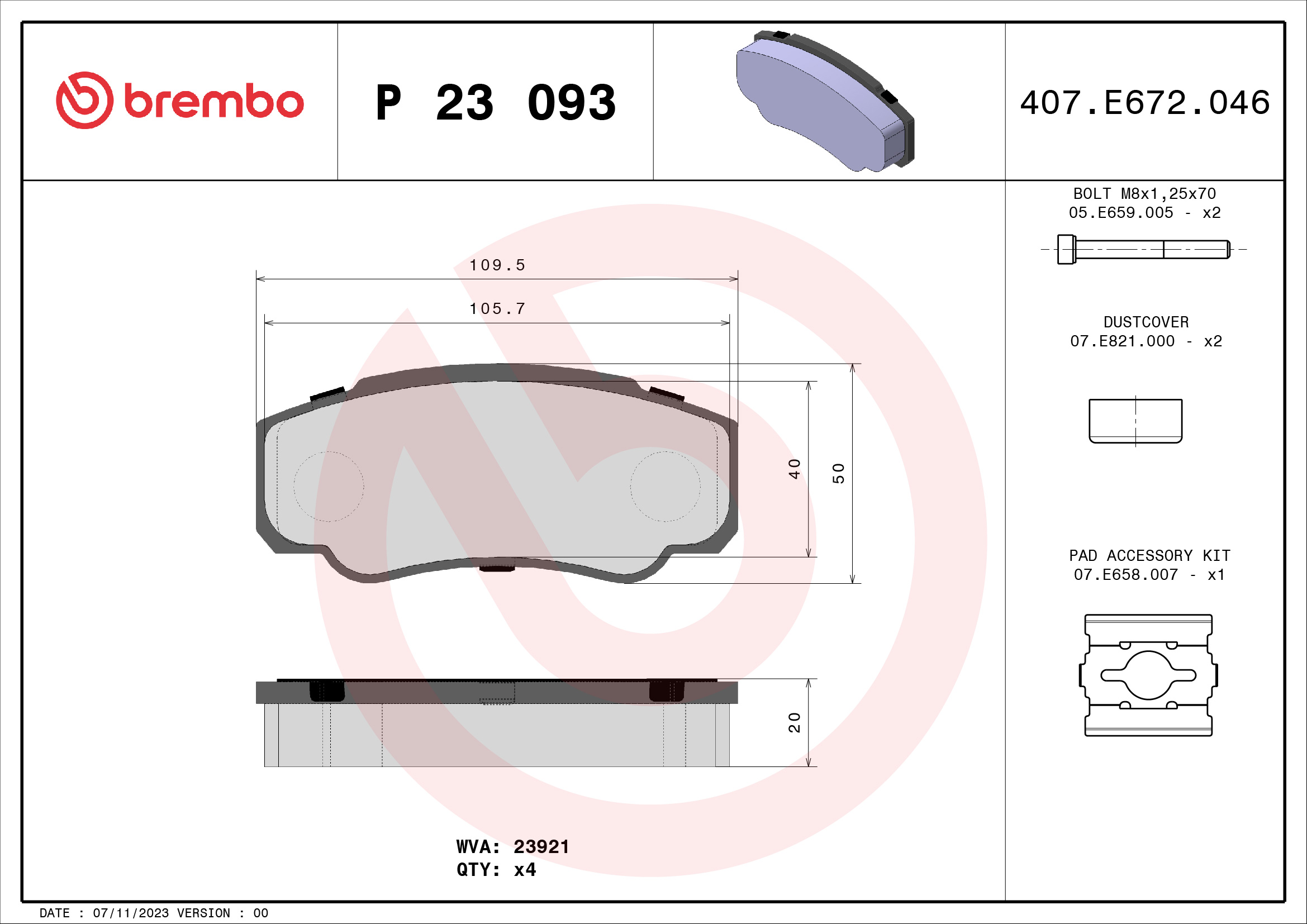 BREMBO sada brzdových destiček, kotoučová brzda P 23 093 Ean: 8020584051634