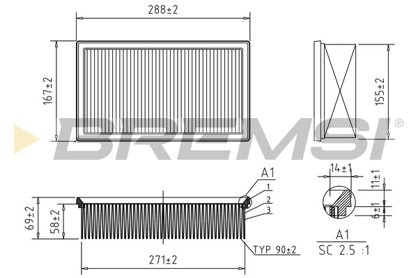 BREMSI vzduchový filtr FA2345 Ean: 8050141141799