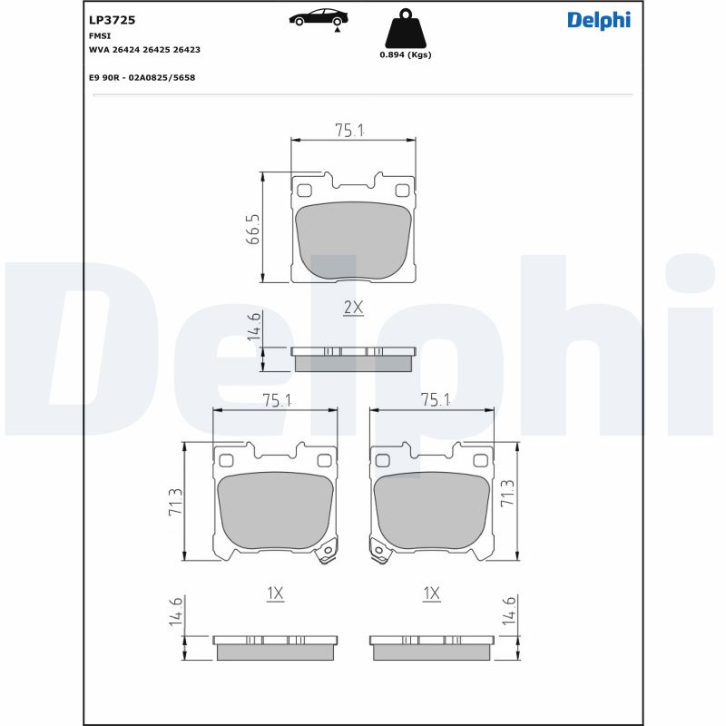 DELPHI sada brzdových destiček, kotoučová brzda LP3725 Ean: 5012759571965