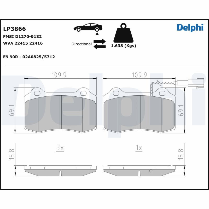 DELPHI sada brzdových destiček, kotoučová brzda LP3866 Ean: 5012759656624