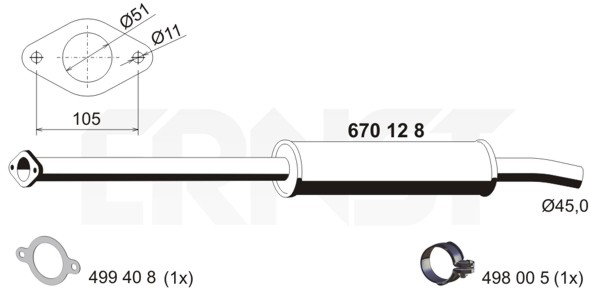 ERNST přední tlumič výfuku 670128 Ean: 4007463670128