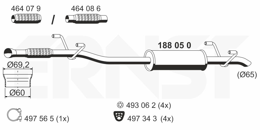 ERNST střední tlumič výfuku 188050 Ean: 4007463188050