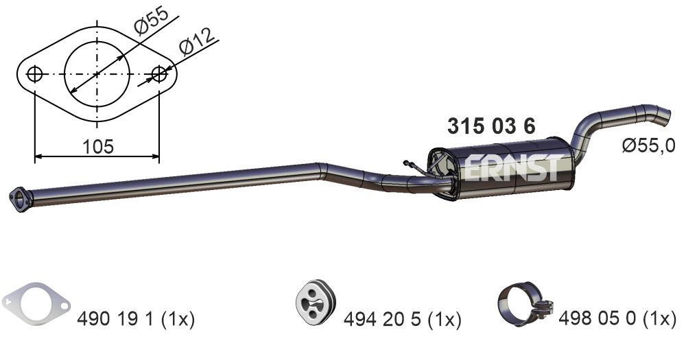 ERNST střední tlumič výfuku 315036 Ean: 4007463315036