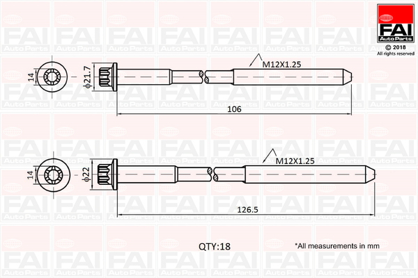 FAI AutoParts sada šroubů hlavy válce B1027 Ean: 5027049207301