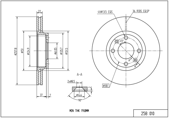 HART brzdový kotouč 258 010 Ean: 5903175169075