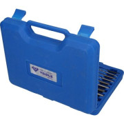 •25dílná souprava •pro profesionální vyšroubování ulomených šroubů a rozpěrných čepů •snížení časových nároků a finančních výdajů •s HSS vrtáky, Ø 3,2 - 4,8 - 6,4 - 8,0 - 8,7 mm a vodic? pouzdry na vrtáky •včetně vodicích pouzder na vrtáky, vyvrtávacích svo vyvrtávacích adaptérů •spirálový vrták z výkonné rychlořezné oceli Souprava k vytažení šroubů z HSS BRILLIANT TOOLS BT54190 určena k profesionálnímu vyšroubování zlomených šrou rozpěrných čepů. Souprava je vhodná jak pro profesioná řemeslníky, tak domácí kutily a mechaniky. Na šrouby a šroubovací čepy od 5 do 16 mm.S touto kompletní sadou n? si ve třech snadných krocích poradíte se zrezivělými, prasklými nebo zaoblenými šrouby i v těch nejhorších situacích. Vysoce kvalitními vrtáky nejprve vyvrtáte otv do závitové tyče nebo hlavy šrouby; u menších šroubů průměrů závitů můžete použít centrovací pouzdra a pomocí i bez vytváření důlků rychle a jednoduše nají abyste při vrtání zamezili poškození závitu. Kladivem do předeme vyvrtaného otvoru zatlučte speciální tvarova vytahovák vhodné velikosti tak, aby se do materiálu spolehlivě zařízlo všech jeho 6 stran. Nakonec nasaďte vytahovák adaptér a s použitím klíče na šrouby nebo stavitelného klíče vytáhněte pevně usazený šroub ven se dodává v pevném plastovém kufříku. Vysoce kvalitní zpracování pro dlouhou životnost.