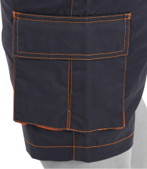 Pracovní kalhoty krátké - montérky, vyrobeny z velmi odolného materiálu kombinujícího bavlnu a polyester (35/65) s gramáží 267 g/m2. Trojité prošívání zajistí tu největší pevnost.