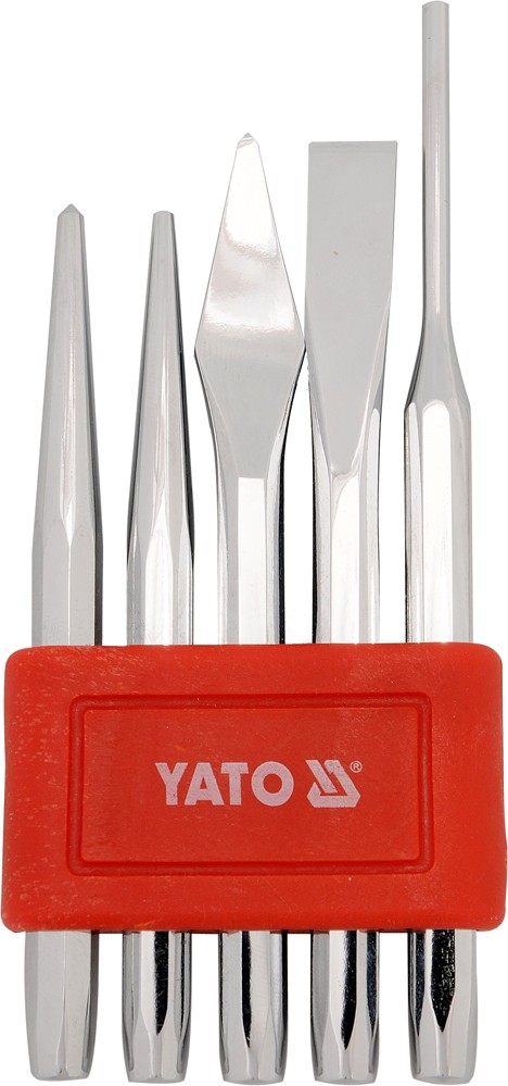 Obashuje křížový sekáč 5,5 x 130 mm YT-4694; plochý sekáč 12 x 130 mm YT-4693, kuželový vyrážeč 3,3 x 120 mm YT-4691; vyražeč 3,8 x 150 mm YT-4690 a špičatý důlčík délky 120 mm YT-4692.