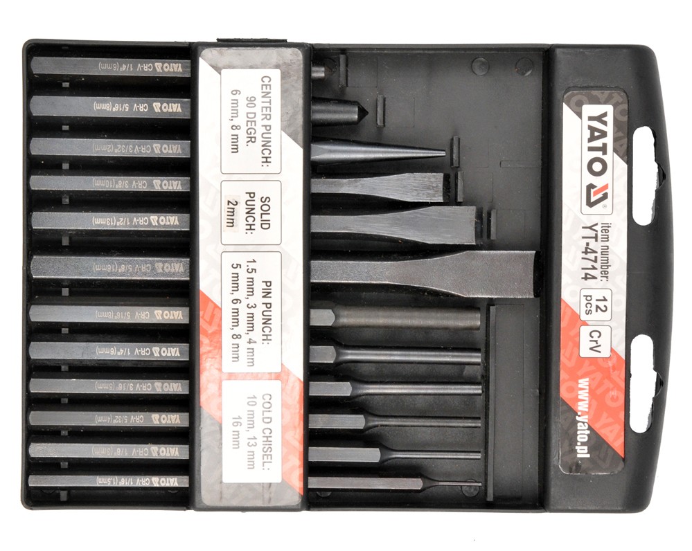 - Název: Sada sekáčů, důlčiků a vyrážečů 12 ks YT-4714