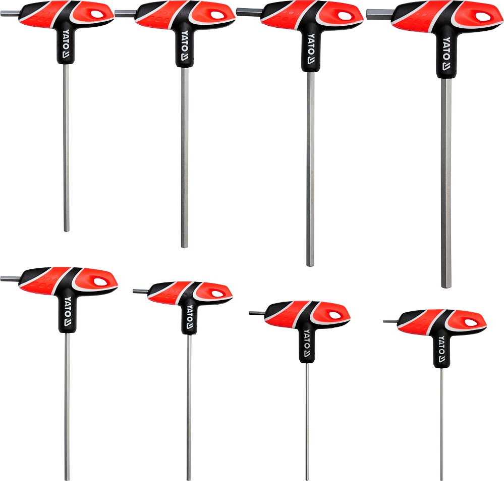 Sada klíčů v provedení T šroubovák, osazený 2x imbus klíčem (1x dlouhý, 1x krátký) a ergonomickou rukojetí, díky které je jeho použití opravdu snadné. Vyrobeno z oceli S2, která zaručuje dlouhou životnost.