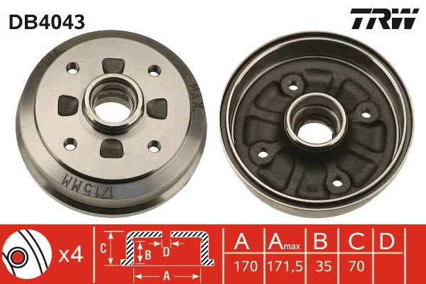 TRW brzdový buben DB4043 Ean: 3322937075232