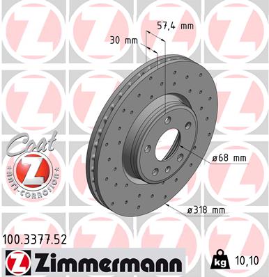 ZIMMERMANN brzdový kotouč 100.3377.52 Ean: 4250238767183